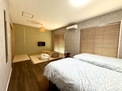 そんな時こそ、お母様方のリラックスの為にも本島中部.恩納村にある(民宿・民泊)のハイブリッドなお宿<tatta egorito>をご利用下さい!南部・北部の中間でどちらに行くにも大変便利です。1日1組限定ですが、実家に帰省したかの様な錯覚を覚えるかと・・皆で観光や体験をされお疲れになられた後、当お宿のサウナ付きの大きな浴槽でリラックス、そして朝・夕食は地元食材を使った大皿料理を提供させて頂きます。洋室8畳、和室6畳、トイレ・洗面の一間続きで完全個室、プライバシーも守られておりますのでご安心下さい。
